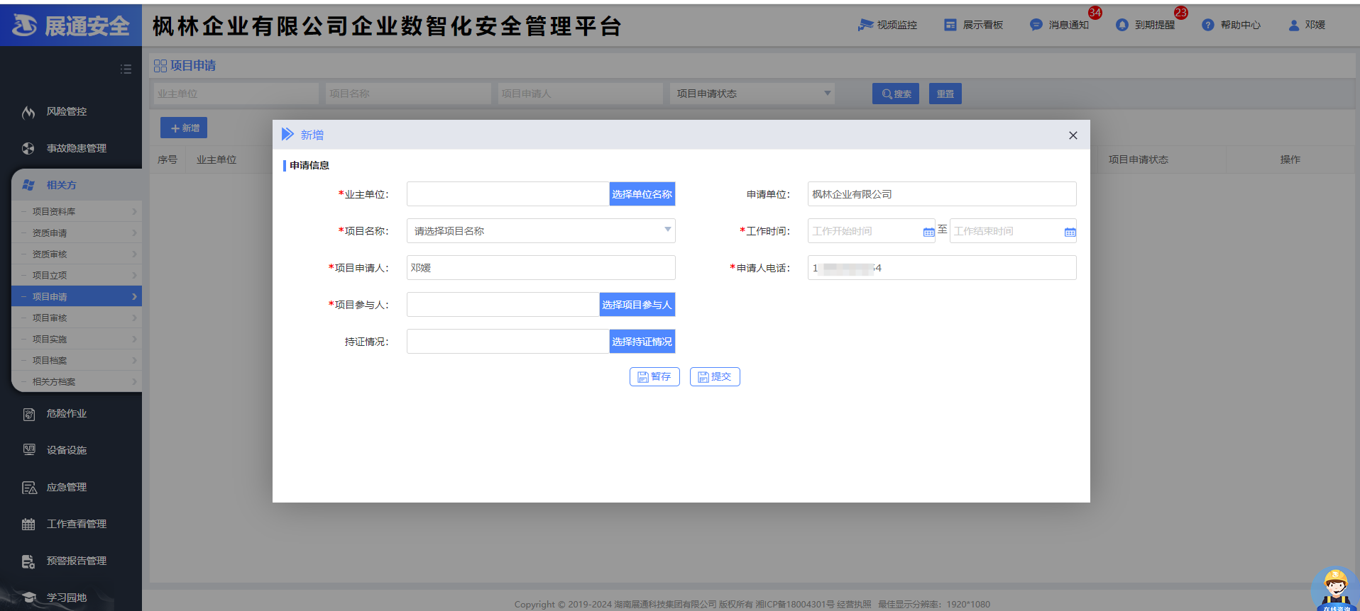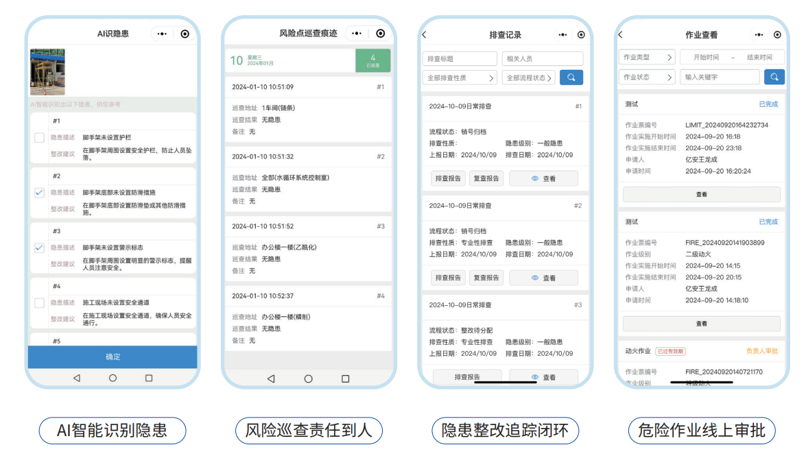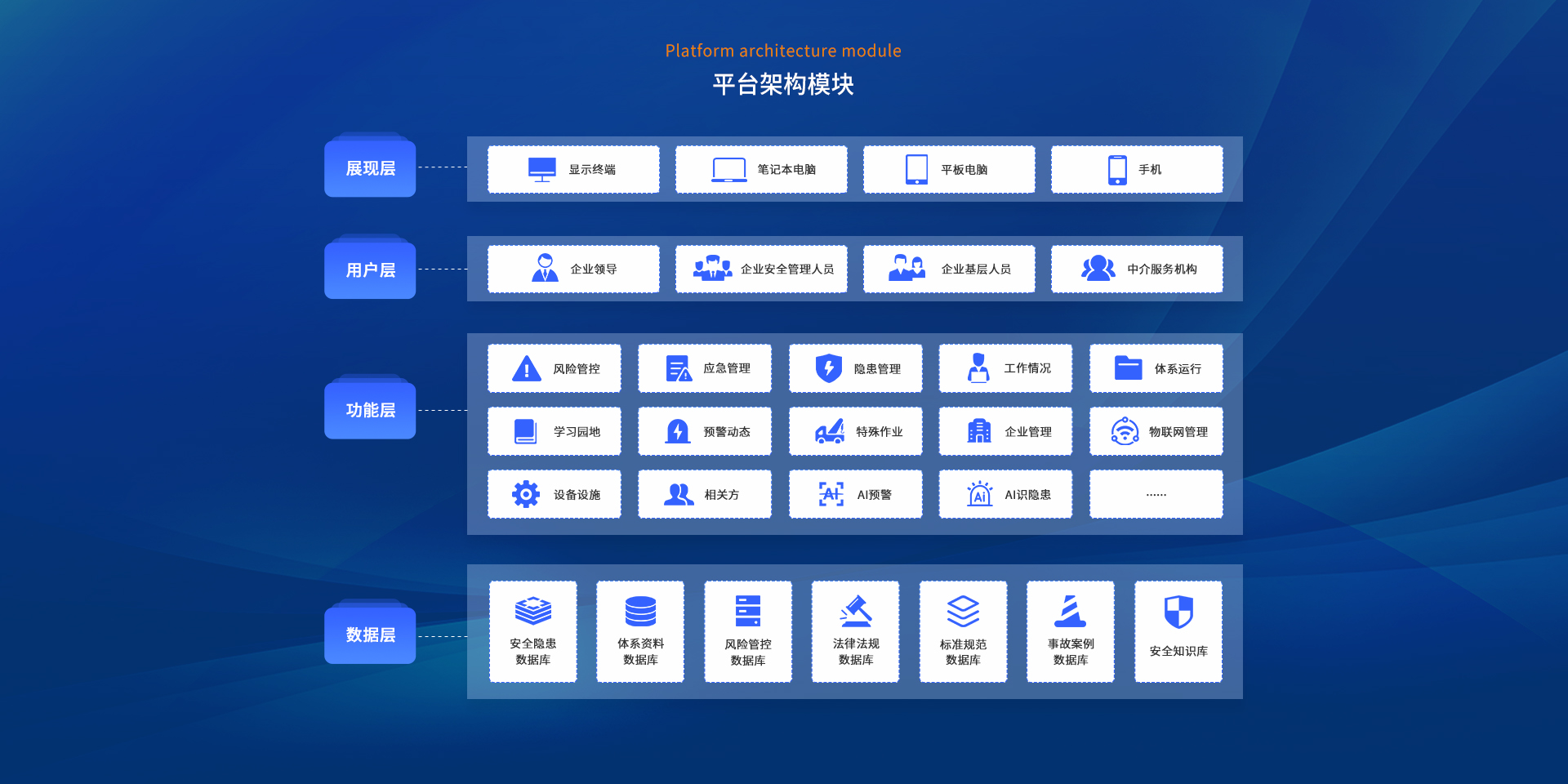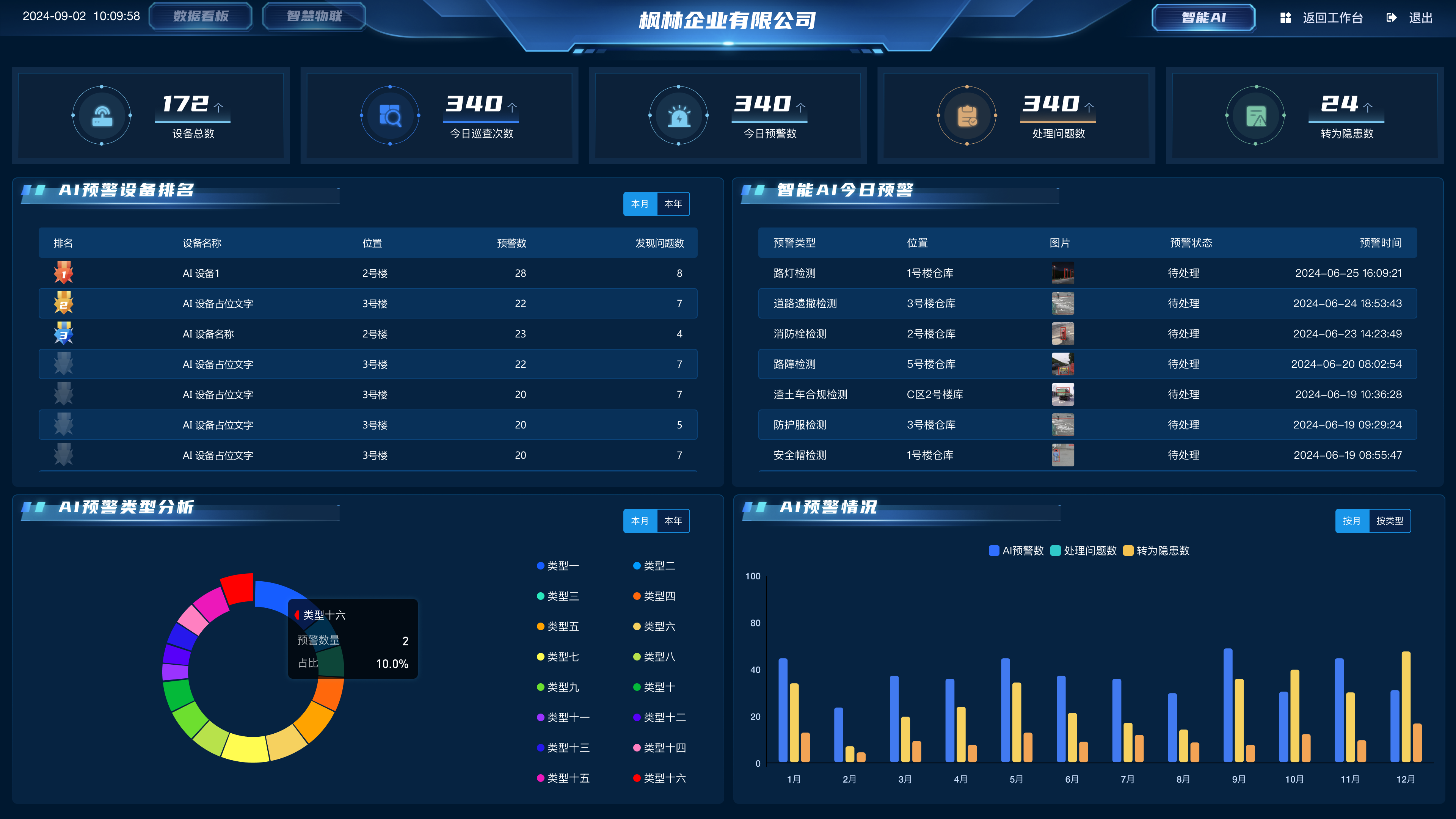企業(yè)數(shù)智化安全管理平臺(俗稱企業(yè)端)匯集企業(yè)管理、風(fēng)險管控、隱患管理、體系運(yùn)行、危險作業(yè)、AI預(yù)警、AI識隱患、應(yīng)急管理、預(yù)警動態(tài)、一會三卡、物聯(lián)網(wǎng)管理、相關(guān)方、設(shè)備設(shè)施、學(xué)習(xí)園地等功能于一體,旨在構(gòu)建標(biāo)準(zhǔn)化、規(guī)范化、便捷化的管理流程,引導(dǎo)企業(yè)自主開展安全管理工作,建立健全全員安全生產(chǎn)責(zé)任制,全面提升企業(yè)安全管理數(shù)智化水平。